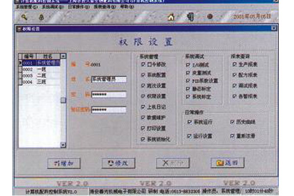 • 軟件系統可對系統管理員、操作工的操作權限進行設置。